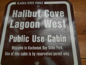 The cabin sign is actually for the West Lagoon cabin, just a little to the east from the Coalition Trailhead and campsite.
