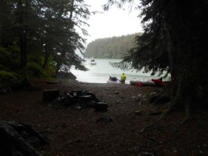 Established state park campsite with tent sites, a fire ring, food storage box, latrine, and bulletin board w/ state rules. Trail access to south Grace Ridge, and a yurt is a short trail nearby. Good water from nearby stream. Most visitors spend the night at the tent sites or yurt, but some day visitors use the Grace Ridge Trail. Water taxis, kayaks, and small boats pull in at the beach access to access camping and the south Grace Ridge Trail.