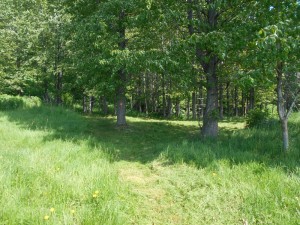 Volunteers weed whacked the campsite, added a fire ring and installed a rain gutter collection system for fire safety. Make sure there is water available, from the bucket or from the stream beyond the cabin before starting a campfire.